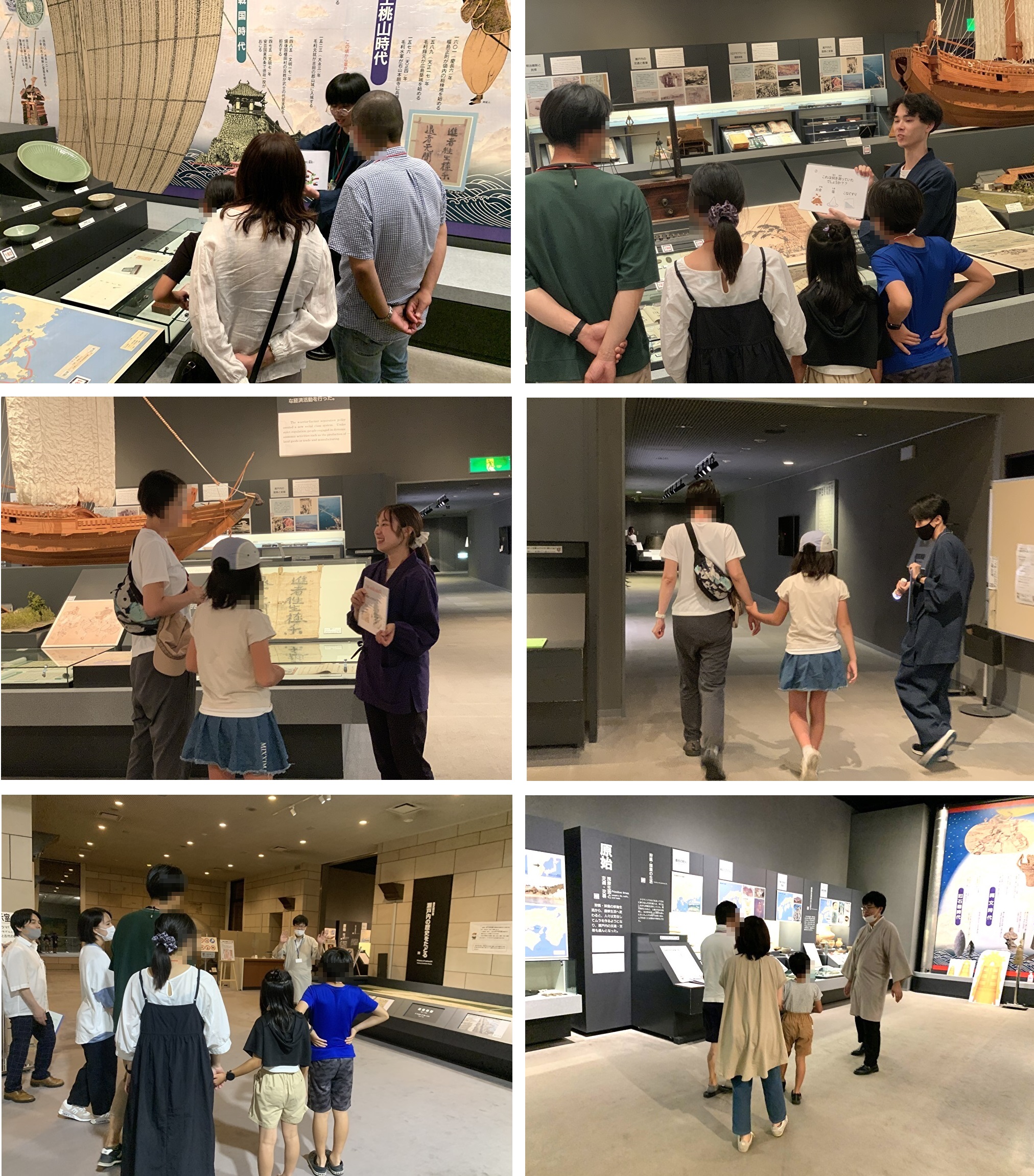 <歴史クイズの様子(上段・中段)。学芸員さんのご協力のおかげで、お化け屋敷までの進行をスムーズに進めることができました(下段)。>