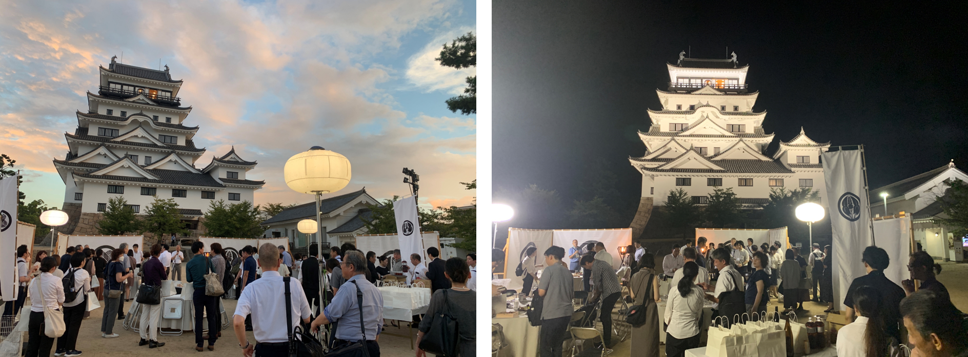 また、2日間開催された学会の1日目の夜には福山城で懇親会が行われました。福山らしさがあふれるロケーションは主に県外からお越しの参加者の皆様に大好評でした。