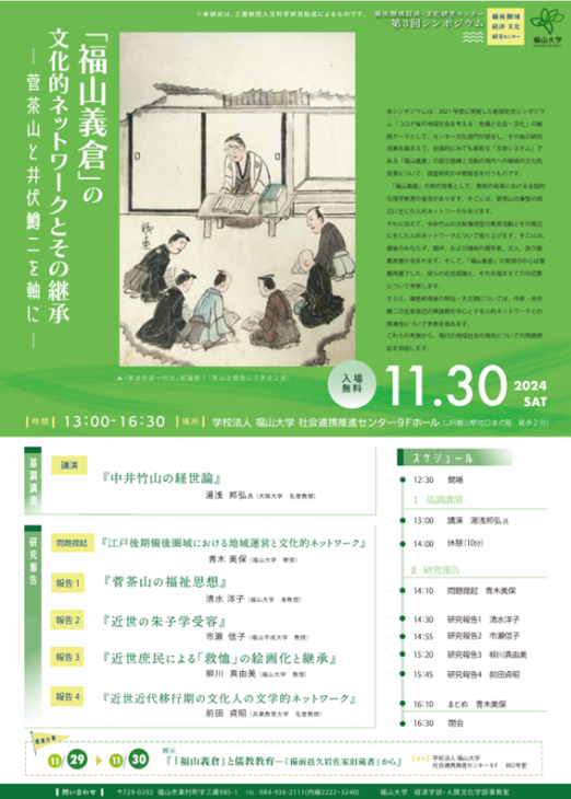 【人間文化学科】備後圏域経済・文化研究センター文化部門主催 シンポジウム「「福山義倉」の文化的ネットワークとその継承―菅茶山と井伏鱒二を軸に―」 のお知らせ