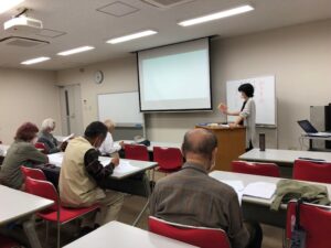 10月26日の地域資料活用研修2024では、ひろしま文化功労者で元新市歴史博物館館長の山名洋通先生に、「江戸後期・福山 大庄屋の知恵に学ぶ地域運営」と題して、義倉の立ち上げの際の調達人の中心的メンバーである信岡家の古文書を通して、当時の大庄屋のくらしぶりについて話していただきました。その住環境、生活時間帯(朝は日が昇る前に出立して城下へ行く、夜は夜なべで作業があるなど)、年中行事、生涯の時間的進行(生まれて7日間は産着を着せられない、3歳、5歳、7歳、15歳庄屋就任)などの多面的な視点から具体的に話されました。その中で見えて来たのは、庄屋は日々の現実的対応に追われて、日記を書く暇もなく、本を読む暇もない状況にあり、しかも「横社会」のリーダーとして常に地域の全体的な状況への目配りをする必要があり、自分のことを垣間見る暇もない、というような厳しい生活ぶりでした。幕藩社会を支える土台の力は、このようにして鍛えられていったのでしょう。