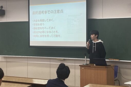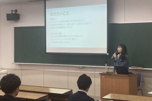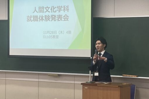 この時期になると、いよいよ大学3年生の就職活動が本格化します。今回は、学科学生の就職活動の様子を、11月28日に開催された人間文化学科の就職体験発表会、2月18日、19日に開催された業界説明会を通してFUKUDAI Mag.メンバーの古内がご報告します。