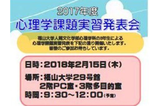 2月15日に、2017年度心理学科3年次生の課題実習発表会と、学生サポーターの認定式が開催されましたので、その様子を報告します。