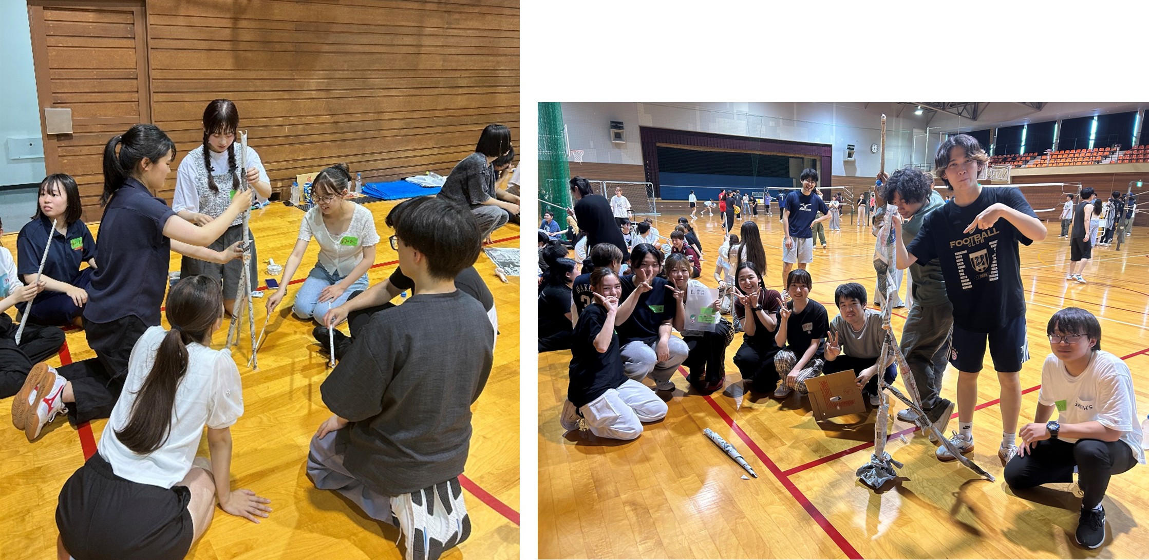 同じフロアで実施しているバレーのボールが飛んでこないかドキドキもしながら、各グループが新聞紙でタワーを作っていました。