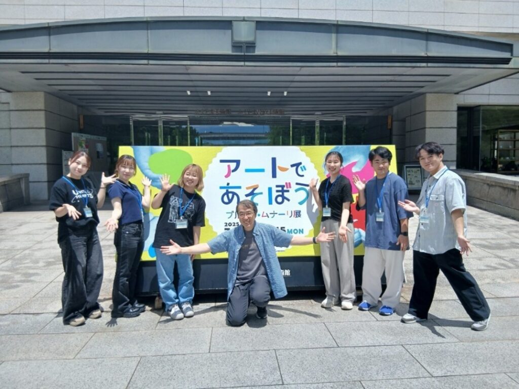 2025年7月20日(日)に発達心理学研究室所属の3年生6名が、ふくやま美術館の「アートで遊ぼう ブルーノ・ムナーリ展」に併せて行われたファミリー・アート教室「カタチを組む/ヒカリで遊ぶ」にボランティアとして参加しました。当日は美術館からの依頼で、メディア映像学科の久保田准教授と学生達も映像班として参加していました。