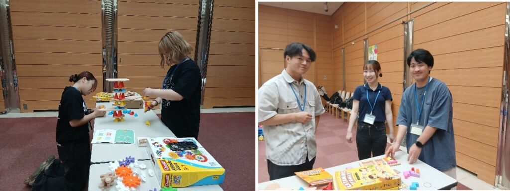 <休憩時間に おもちゃコーナーで遊ぶ大学生>