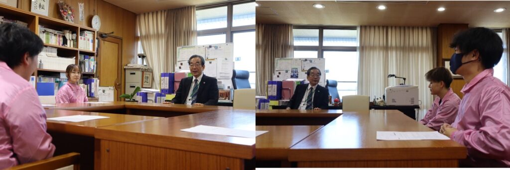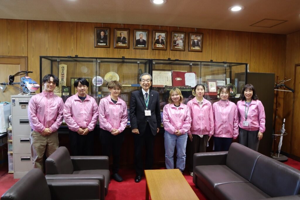 学生たちは、学長室を訪問するのも、また大塚学長と直接お話しするのも初めてでした。そのため、退室後は皆「緊張した!」と口を揃えていましたが、在学中に学長と対面でお話ができたことをとても喜んでいました。また、広報に向けて大型ポスターを作製するというアドバイスもいただき、今後の活動への意欲がさらに高まった様子でした。
