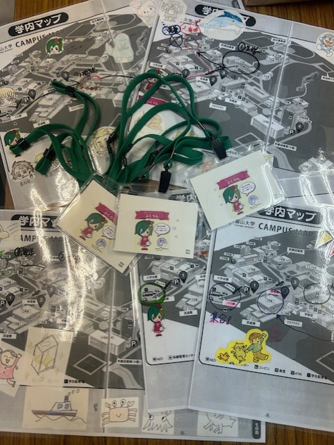 限られた時間で子どもたちがスムーズに各学科を体験できるよう,学生が名札と学内マップを作成しました。