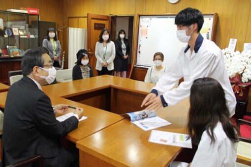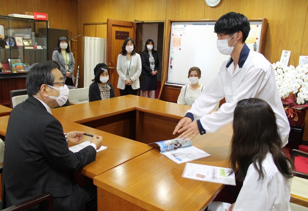 4月15日(木)、心理学科発達心理学研究室の4年生が学長室を訪問し、大塚学長に昨年度の「子育てステーション」の活動を報告しました。