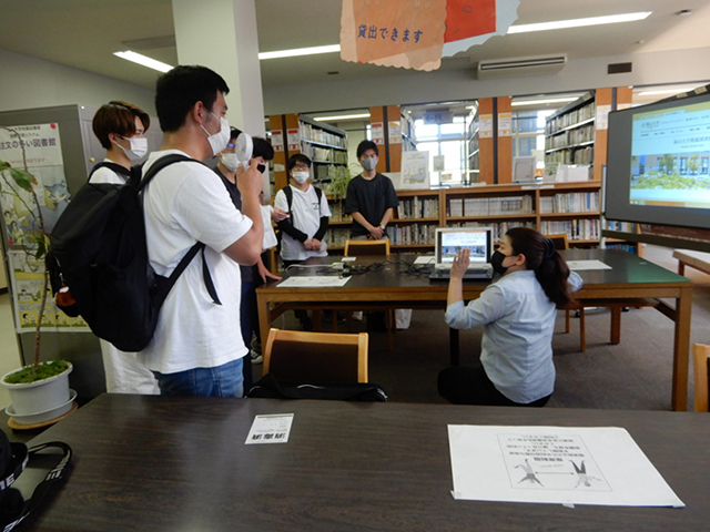 通常であれば入学後早い段階で行っていた図書館見学ですが、対面授業が再開されたことで、やっと実施できました。