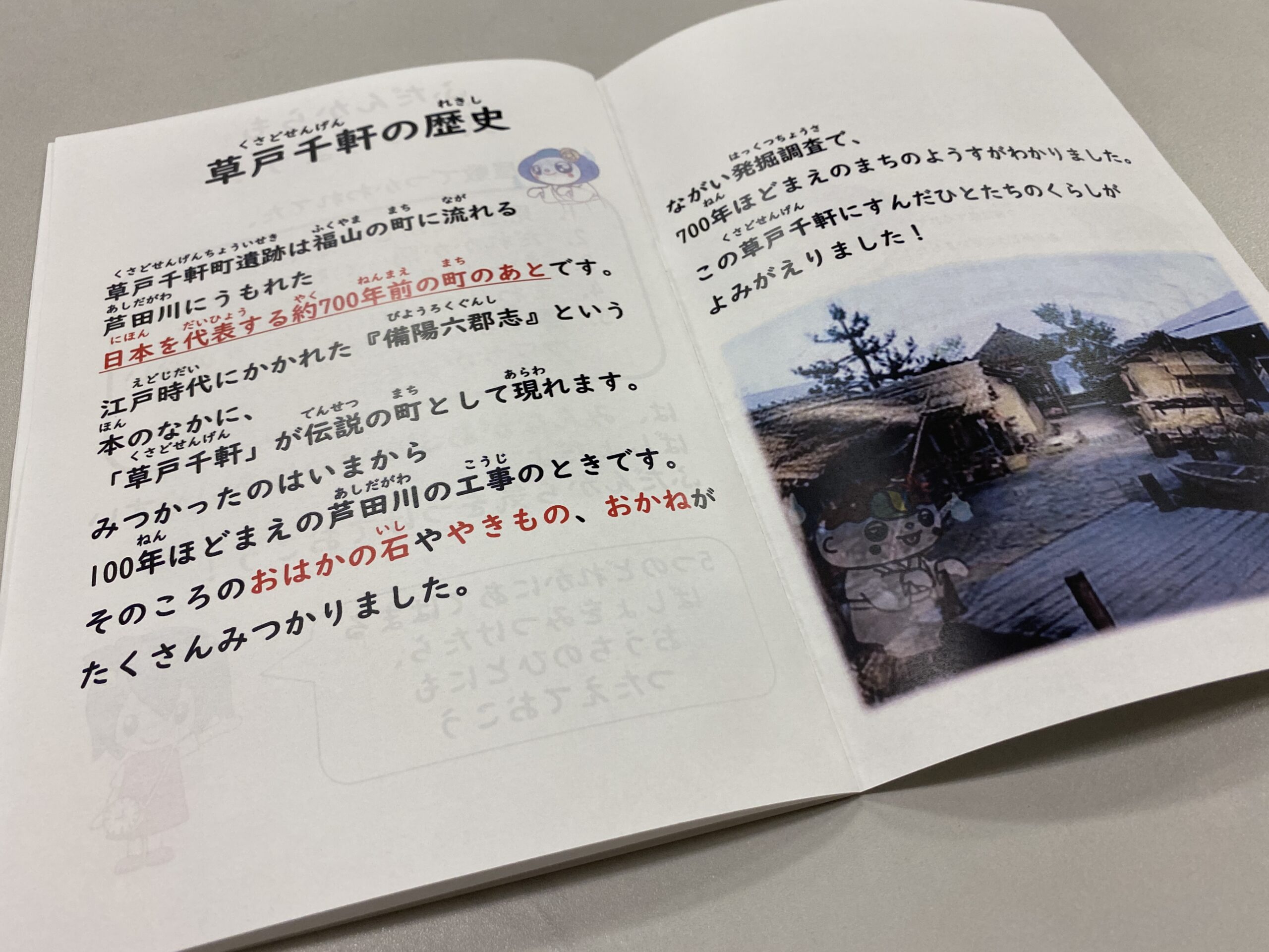 その他にも、お化け屋敷体験前や体験後の説明用の原稿やパワーポイント資料の制作も行いました。どのように伝えれば、心理学や草戸千軒について、知らない小・中学生やその保護者の方々に伝わるか、何度も先生方や歴史博物館の学芸員さんに意見をいただきながら作成しました。