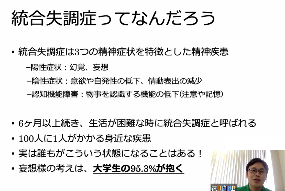 最初の武田講師は、統合失調症の研究が専門です。自分の専門領域を話しているときの研究者は楽しそうですね。