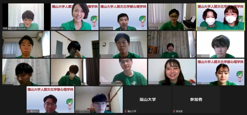 最後に記念撮影を行いました。学生の皆さん、参加者の皆さん、ありがとうございました。心理学科の魅力がオンラインでも十分に伝えられたと思います。