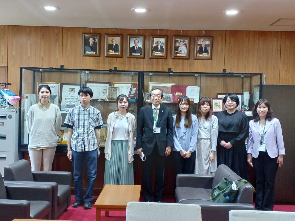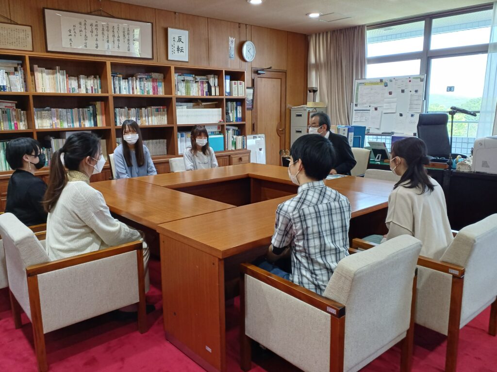 4月28日(木)に心理学科発達心理学研究室の3年生が学長室を訪問し、大塚学長に2021年度の子育てステーション活動について報告しました。