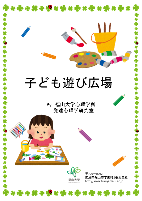 心理学科では、2007年度から福山駅福山城口前の学校法人福山大学社会連携推進センター2階にある子育てステーションにて、地域に開かれた子育て支援活動を行ってきました。発達心理学研究室の学生がその運営に携わるようになり、今年度は8年目となります。「幼保連携型認定こども園こどもえんつくし」と協働しながら、また、心理学科助手のサポートを得ながら、子育てステーションにて「子ども遊び広場」を実施しています。