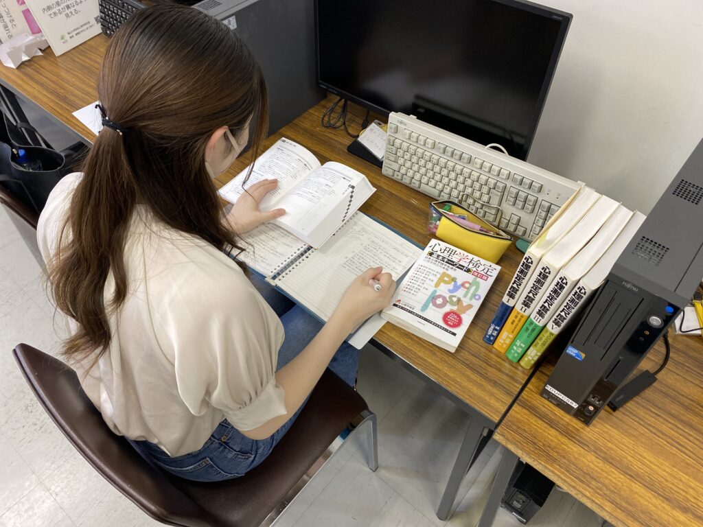 大学院進学に向けた勉強の他には、メンタルヘルス・マネジメント検定、心理学検定合格のための勉強を行っています。検定の勉強を並行して行うことは非常に大変ですが、偏りが出ないように時間やページ数を区切って勉強するなど工夫しながら取り組んでいます。なお、メンタルヘルス・マネジメント検定はすでに合格することができ、次に受検する心理学検定への励みになりました。心理学検定は科目数が10科目あり、範囲が心理学全般であるため、覚えることや整理することが多く、非常に大変ですが、努力を怠らずにこちらも合格をつかみ取りたいと思います。