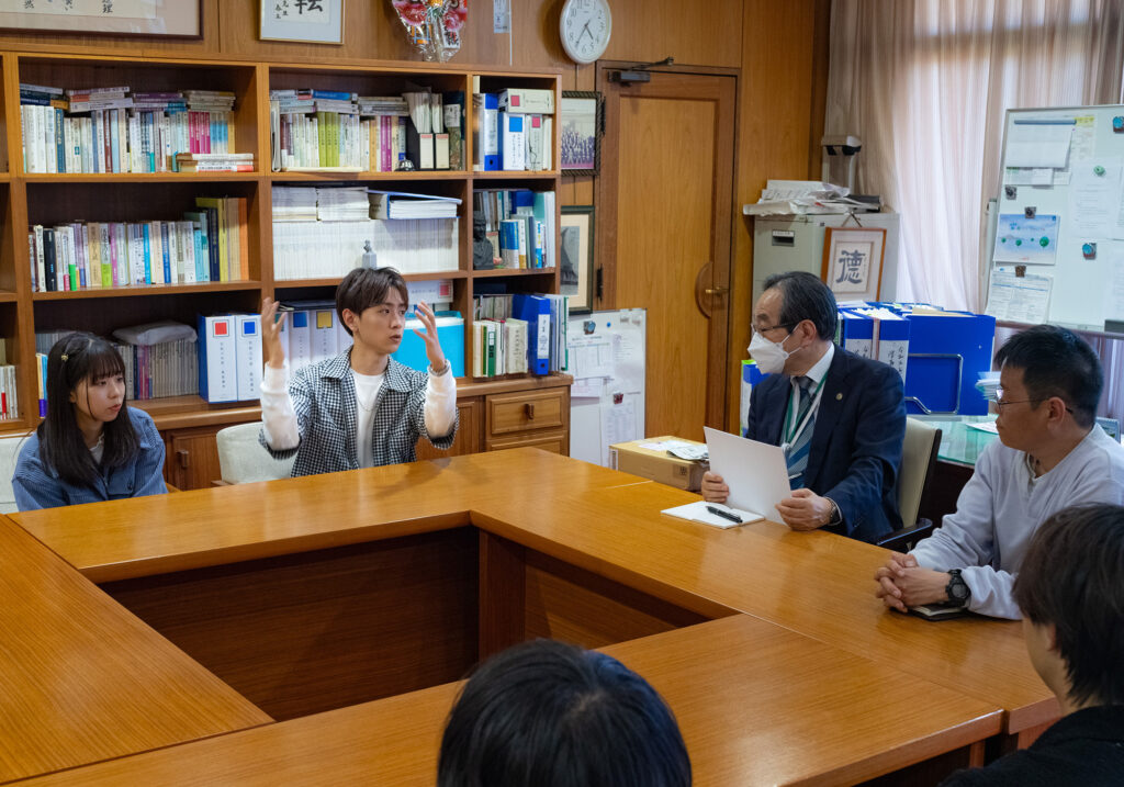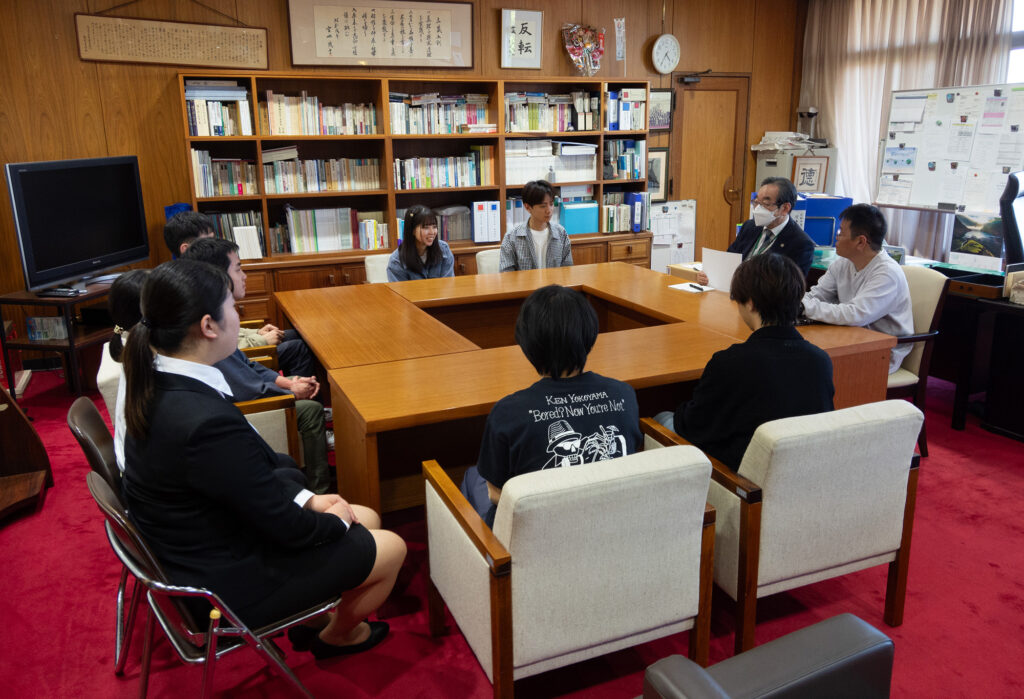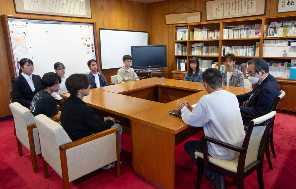 学長室では、中継作業のほか、普段の授業での活動についても話をすることができました。