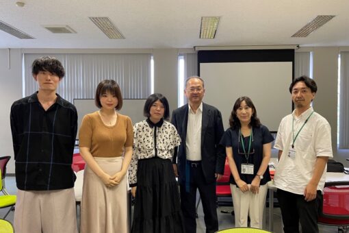 最後に、平 伸二教授(犯罪心理学研究室)、赤澤淳子教授(発達心理学研究室)、寺田和永准教授(教育臨床心理学研究室)と協力してくれた大学院生とで集合写真を撮りました。写真左から人間科学研究科2年生の時元克巳さん(医療心理学研究室)、塩田沙月さん(医療心理学研究室)、坂本望月さん(発達心理学研究室)です。