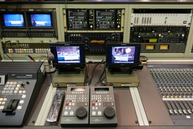 右の写真は4Kに対応する業務用のビデオカメラ(SonyのXDCAM)です。小型軽量の機動力を生かし、学内のみならず、福山市内・鞆の浦など、学外での撮影で活躍しています。