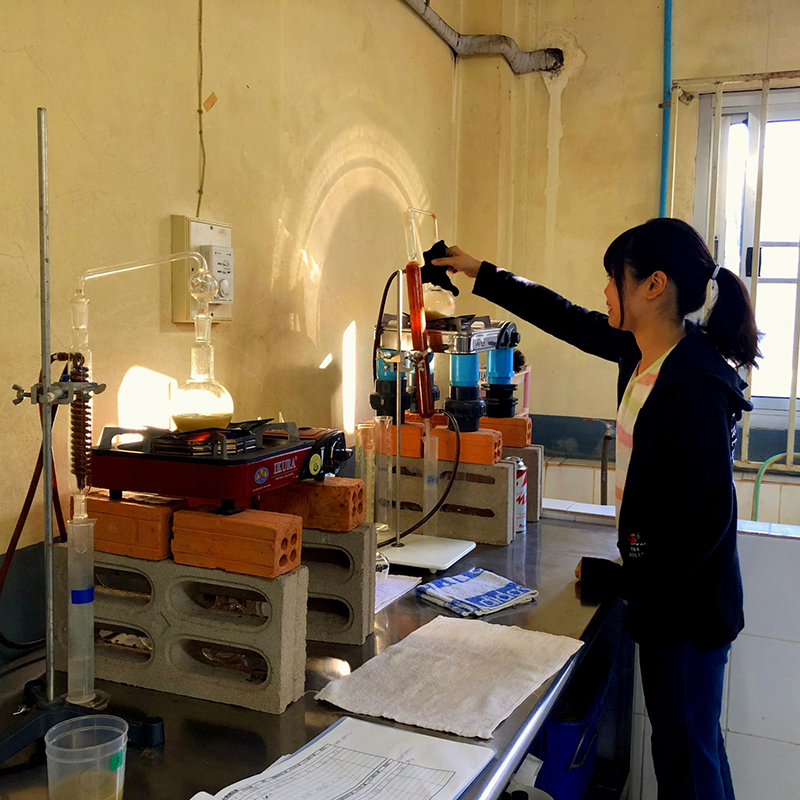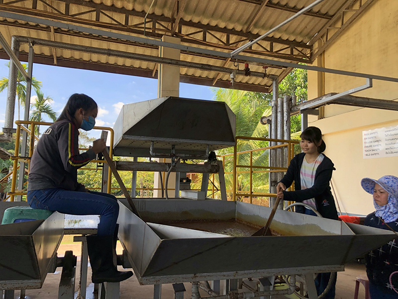 生物工学科2年生の片岡さんが12月後半の約2週間、ラオスの首都ビエンチャンの郊外にある福山大学ラオス醸造研修所でラム酒製造の研修を行っています。