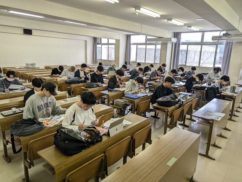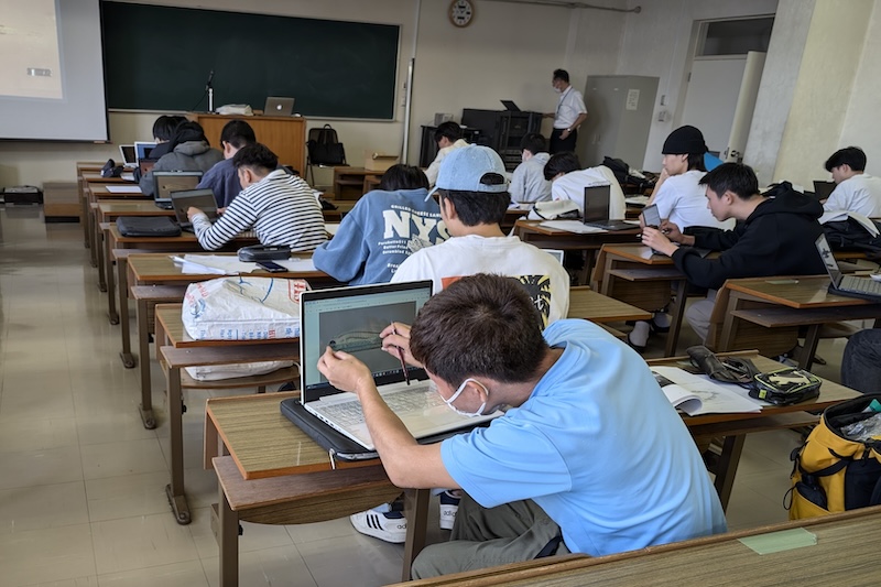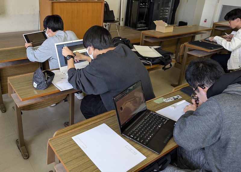 3年生の資源利用育成コース履修者を対象とした資源利用育成実習(2)では、ブリの発育段階をスケッチとサイズの計測によって学ぶ実習を行っています。なぜ記録を残すのに写真撮影だけではなくスケッチをするのか、正しいスケッチの書き方、よく観察することの重要さ、等々を学ぶ実習です。