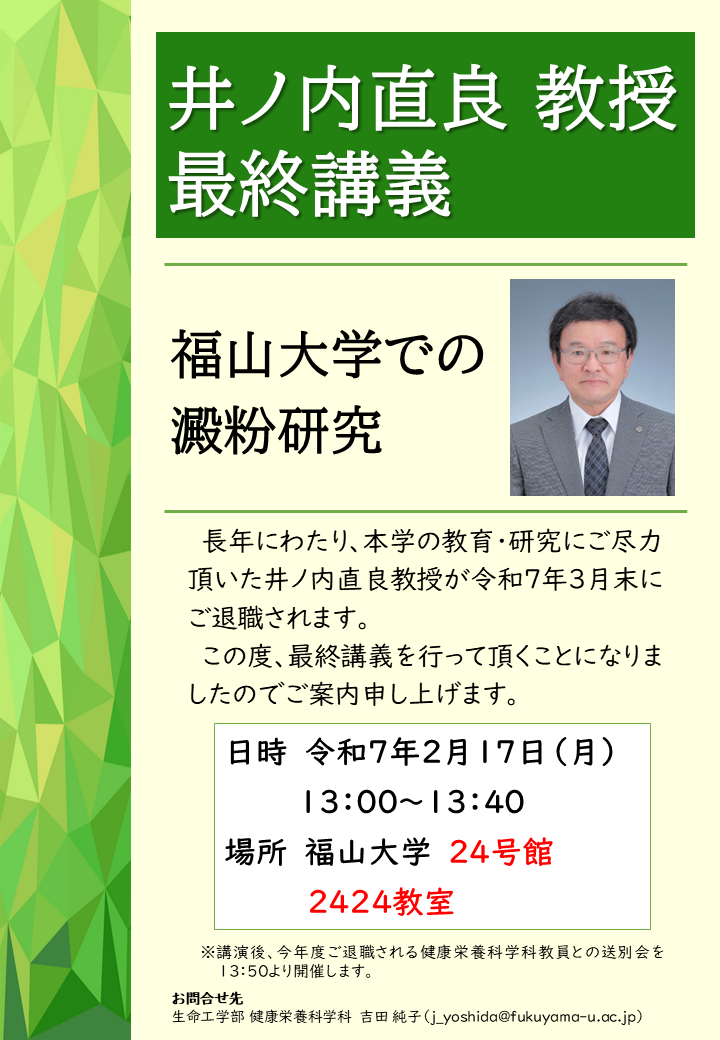 ※講演後、今年度ご退職される健康栄養科学科教員との送別会を13:50より開催します