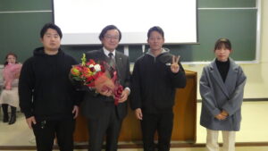 この度、2月17日(月)に行った井ノ内教授の最終講義と今年度でご退職される学科教員と学生との送別会の様子をご紹介します。