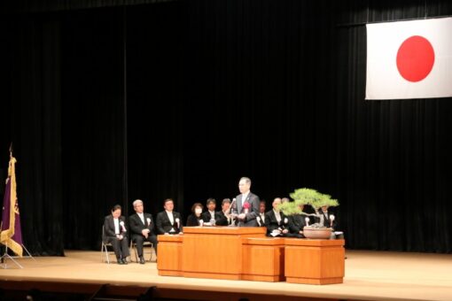 今年の学位記授与式には、枝廣直幹福山市長もおみえになり、ご挨拶を賜りました。そのスピーチでは、本学科の秦野琢之名誉教授が始めた松永駅前活性化プロジェクト『M亭』と、久冨泰資教授が開発した「福山バラの酵母ワイン」を取りあげていただき、「福山市として初めて開催する国際会議である『第20回世界バラ会議福山大会2025』で、世界の方々をバラの香りのするワインでおもてなしします。」とご紹介頂きました。