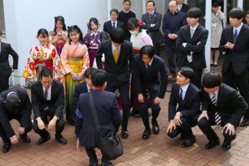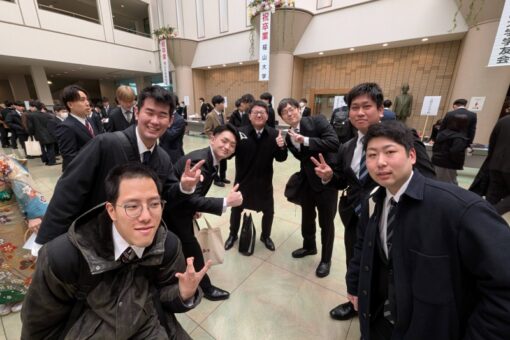 令和7(2025)年3月20日(木、祝)午前10時から、福山大学大学会館にて、令和6(2024)年度福山大学学位記授与式が挙行されました。今日は朝から冷え込みが強く、この時期としてはかなり寒い朝でしたが、新型コロナも終息し、会場は熱気に包まれていました。 大学会館のロビーに、本学科の男の子が固まっていたため、写真をパチリ。「なんか地味だなぁ」というと「これが生物らしい」とのこと。