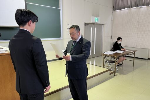 3日から学科でのオリエンテーションが始まりました。最初に北口学科長より入学許可証が渡されました。