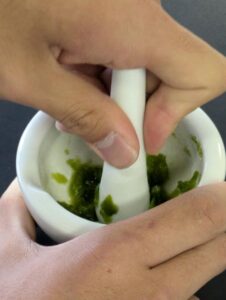 固形試料をすりつぶしています。写真はピーマンを潰しているところです。