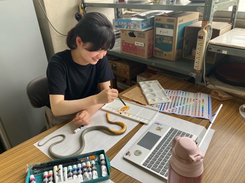 サルなどの霊長類を研究する意義の一つは、ヒトとは何かを知ることです。今回はオスの育児を取り上げましたが、ニホンザルとヒトは全然違いますね。こういったヒトとの違いや類似点を一つ一つ明らかにしていくことで、生物の一種としての「ヒト」の理解が深まるのです。私が主宰している「動物生態学研究室」では、学生たちがさまざまな角度から瀬戸内地域のニホンザルの研究を進めています。サルの写真を食い入るように見つめる学生もいれば、行動実験用のヘビの模型の色塗りをする学生もいたり、多種多様です。若い読者の方も、福山大学生物科学科であなたならではの視点でお猿の研究をしてみませんか?