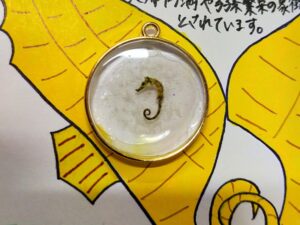 レジンに封入し、UVライトで硬化させて標本を作りました。