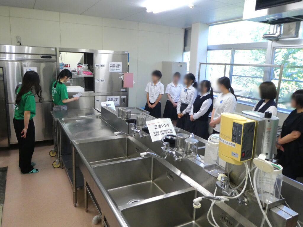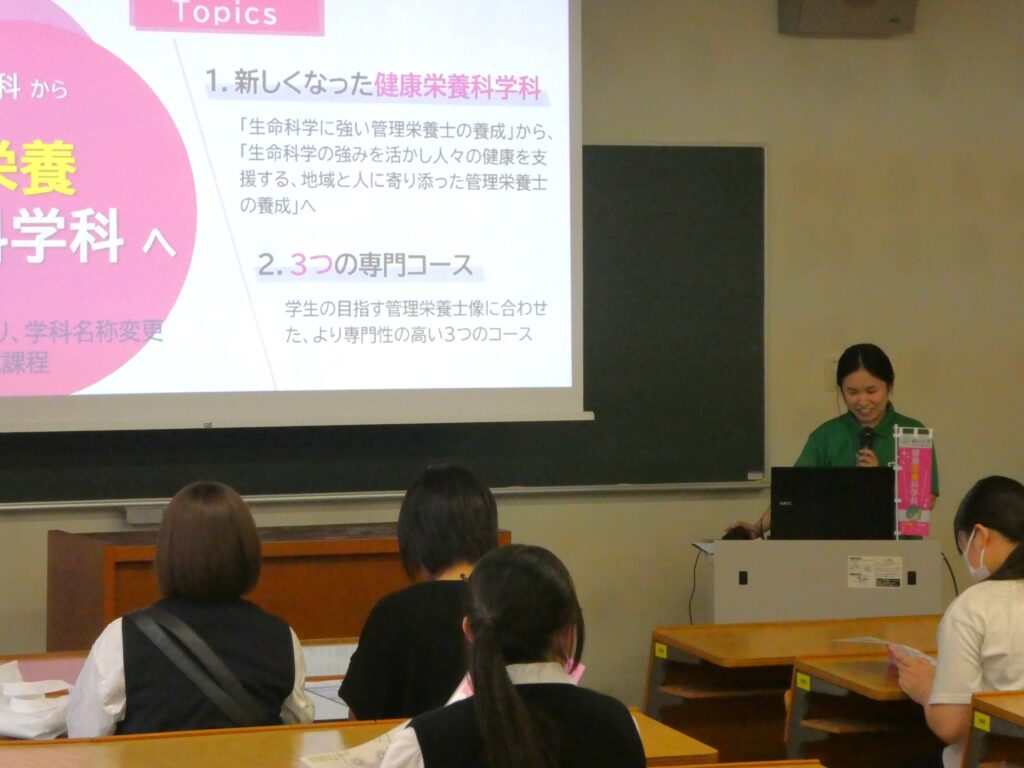 今回のオープンキャンパスでは教員と学生による学科・キャンパスライフについての紹介の他、調理実習室や給食実習室の施設見学ツアーを行いました!