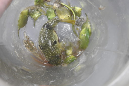 釣りと同じで冬の間はなかなか生き物のサンプリングが難しいようですが、それでもスズキ、アミメハギ、カズナギ、ヨウジウオ、タツノオトシゴ、クサフグ、メバルなどの魚類や、イカ、エビ、カニ数種が採れました。3月くらいから、生き物が増えだして、サンプリングが(そして研究が)面白くなってくるようです。