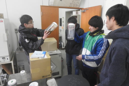 採集後は研究室に帰り、生物の分類と仕分け作業を行います。4年生から3年生へ、分類や仕分けに加えてサンプルの保存方法などの引継ぎがありました。最後に使った用具を片付けてひと段落です。