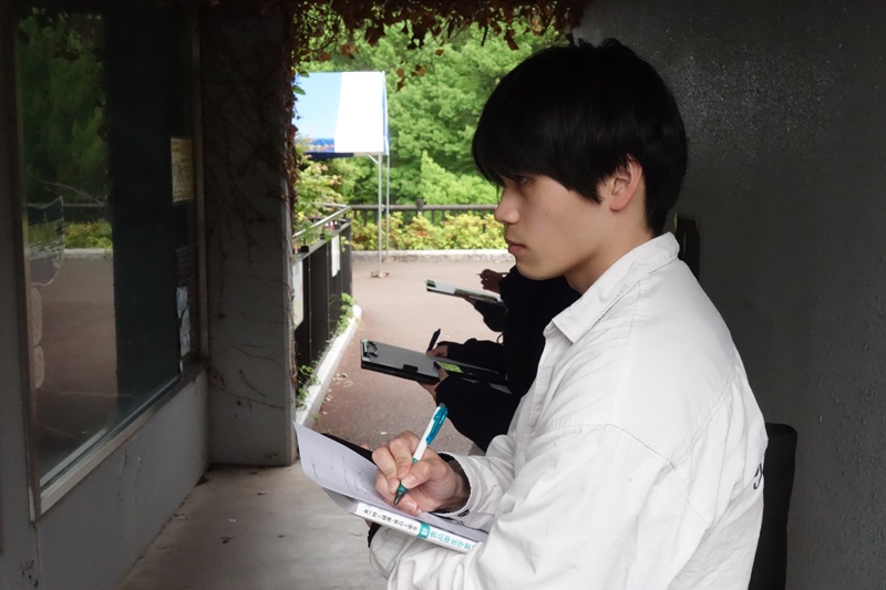 多くの学生にとって野外で動物の行動観察に取り組むのは初めてです。バスの中の表情が一転、皆真剣な眼差しです。最初こそ慣れずに戸惑う学生も見られましたが、友人や教員と相談しながら取り組み、最後は皆できるようになっていました。3年生にもなると本当に頼もしいものです。それぞれに得られた結果に則り、今後は学生どうしのディスカッションを通して、動物種間の行動の類似性や相違性を考察していく予定です。