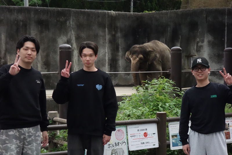 最後にお世話になった萩原さんや園長さんを交えて集合写真を撮りました。今回の動物園実習の追加により、生物科学科の教育の幅が広がりました。楽しい動物園を活用した機会だったからこそ、学生は意欲的に学びを深めることができたことでしょう。お世話になったタカオ福山動物園の皆様、本当にありがとうございました。いろいろな行動を見せてくれた動物たちにも感謝いたします。
