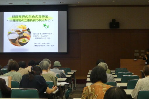 健康栄養科学科では、毎年6月と11月に市民フォーラム「食と健康のライフサイエンス」と題して、地域の方に向けて講演会を開催しています。健康栄養科学科の教員や外部講師の方が、一般の方にも分かりやすく食と健康について語ってくださいます。