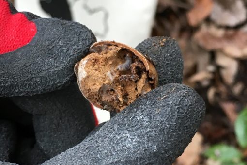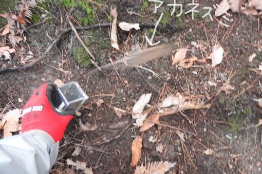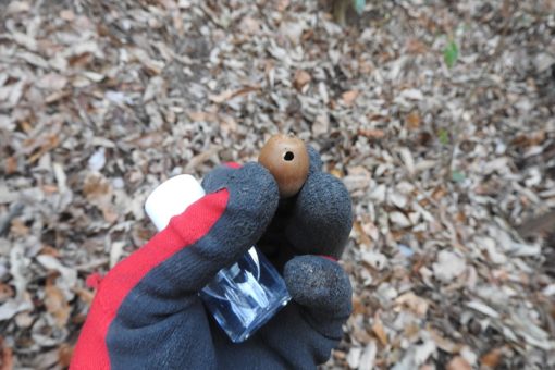 アカネズミはドングリが大好きなことが知られています。秋の間にため込んだドングリを食べながら冬を過ごすのです。今回のフィールドにもたくさんのドングリが落ちていました。ドングリを見てみると、虫に食われているものが多く、きっとアカネズミの口にもこの虫が入るんだろうなと想像します。ドングリだけ見ても森の中では様々な生物の間でやり取りが行われていることがわかります。