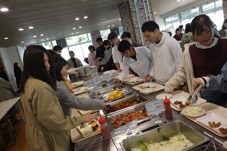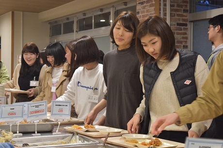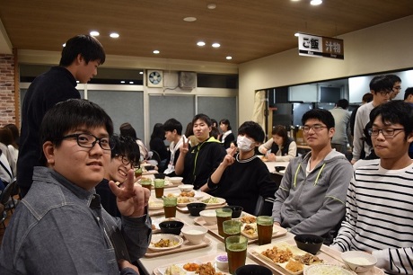 夕食はバイキングでした。今年度は食べ盛りの男子の新入生が多く、もりもりご飯を食べていました。