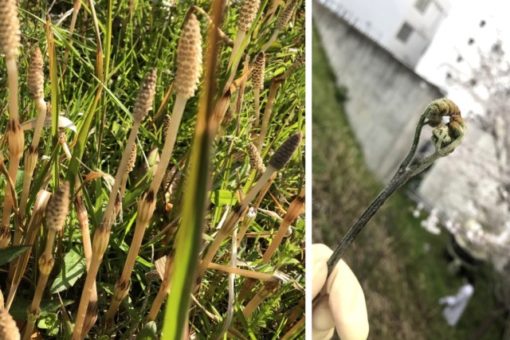 18号館と28号館の間の崖のようになっている斜面に、わらびは生えていました。