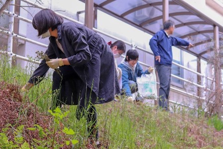 最近は急に気温が高くなってきましたが、まだ4月の肌寒い初旬のころ、里山と似た自然豊かな環境の福山大学のキャンパス内で、生命栄養科学科の4年次生の学生たちと山菜を採り、春の味覚を味わいました。