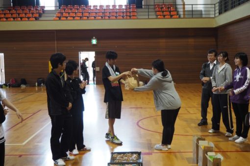 試合後には表彰式を行い、最後に参加賞と順位ごとにお菓子を配りました。