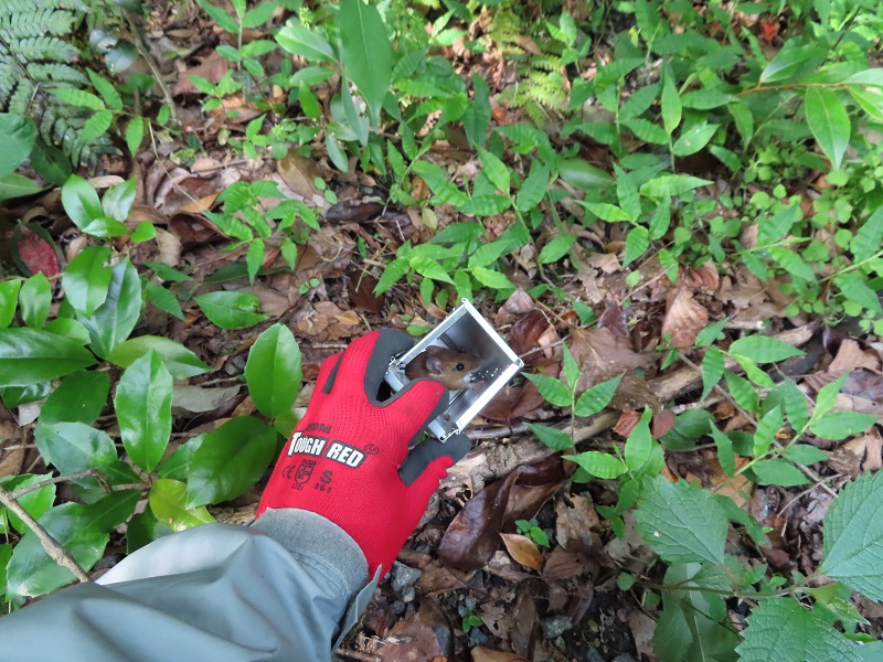 ちゃんといましたよ、アカネズミ。2つの島で16頭分のサンプリングを行うことができました。これから卒研生がDNAの分析を行います。結果が楽しみですね。