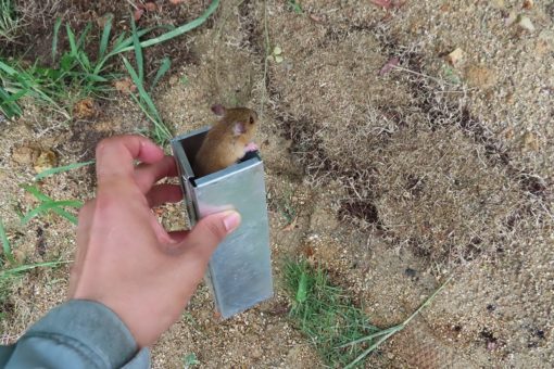 今年も無事にアカネズミを6頭捕獲することができました。この実習内容が行われるかどうかはネズミを捕まえられるかどうかにかかっています。こんな実習他にありません。でも毎年ちゃんと捕まります。アカネズミは森の中でしっかりとその命を次世代につないでいるようです。DNA分析用のサンプリングを行った後は、6頭全てを元の森にリリースしました。元気よく森に走り去っていきましたよ。毎年感じるのは、島のアカネズミよりも本州側のアカネズミの方が活発であることです。良く動いたり脱出を試みて齧ろうとしたり。捕食者の影響かな?遺伝的な違いがあれば面白いのですが。