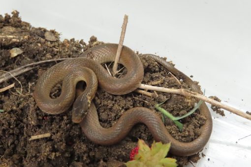 この実習では、たいていアカネズミしか捕まらないのですが、たまーに珍しい動物がトラップの中にいます。過去には、ヒミズやカヤネズミなどがいたこともあります。今年、トラップにおられたのは、、、ヒバカリというヘビでした。体長50cmくらいの小さなヘビです。