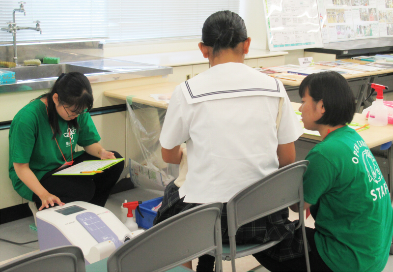 体験の合間に、「アルバイトはしていますか?」「印象に残っている実験・実習は?」等、学生スタッフの生の声を聞く事ができ、参加した皆さんの小さな疑問を解決する助けとなったのではないでしょうか。