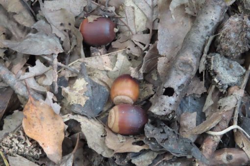 アカネズミが大好きなドングリがこんなにたくさん落ちているのに、一体どこに行ってしまったのでしょう?巣の中に持ち込んだドングリをいっぱい食べて、トラップに置いた餌には興味がなくなってしまったのでしょうか。今年の2月から始めたアカネズミの調査もそろそろひと段落つきそうです。今年もたくさんのデータを提供してくれました。