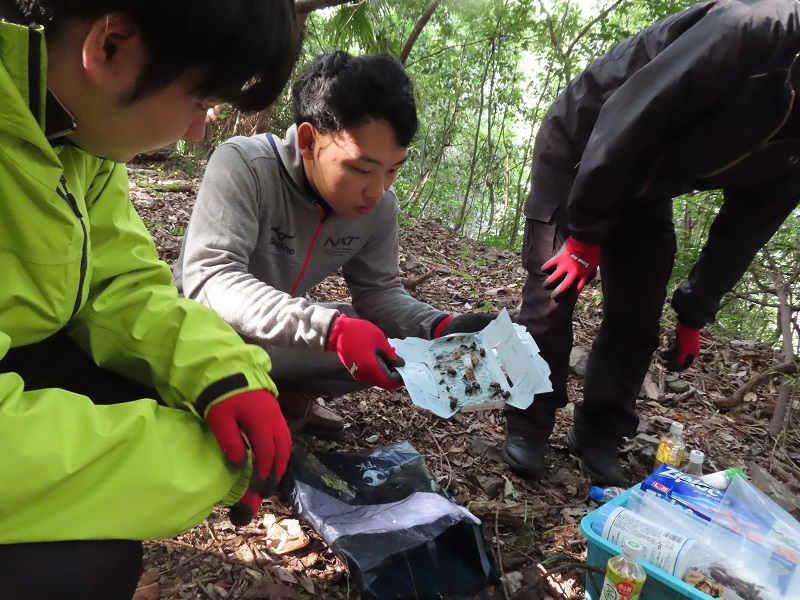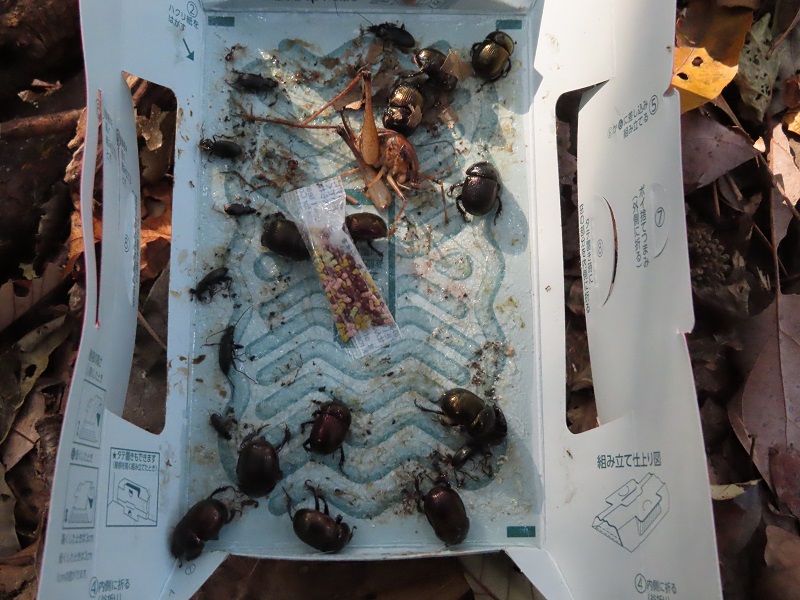 一方で、まだまだ虫たちは元気です。学生たちが、工夫をしながら、ゴキブリホイホイを一晩仕掛けました。すると、、、「うわ。。。」