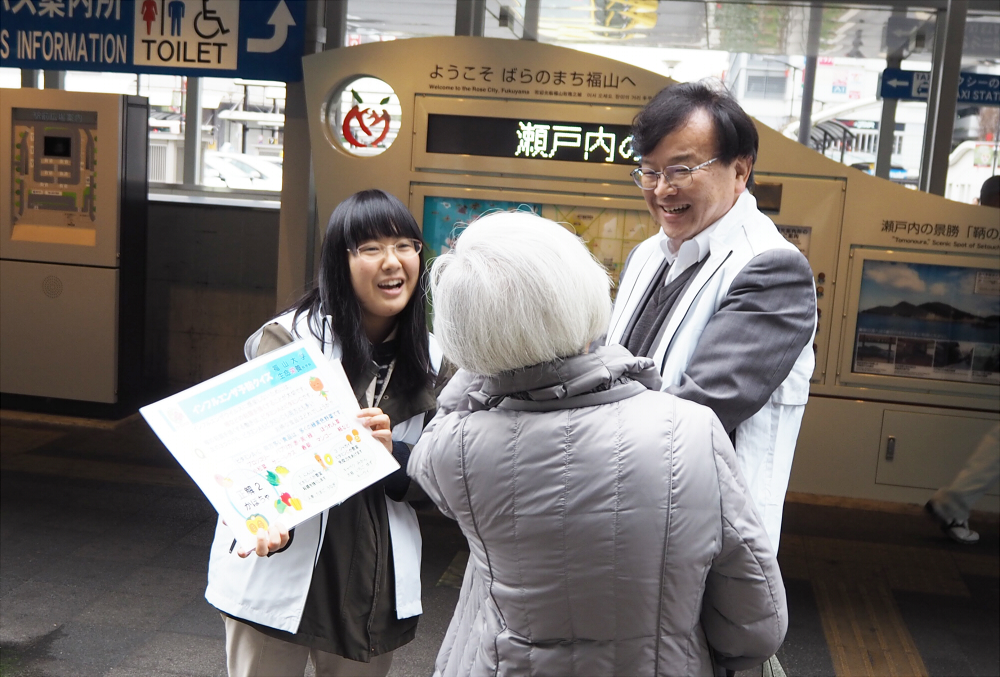 12/19(金)福山駅前周辺にて、食に関する街頭啓発活動 第3回を実施したため、当日の様子をお伝えします。